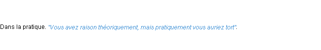 Signification du terme « pratiquement », parution de 1932, dictionnaire académique Français.