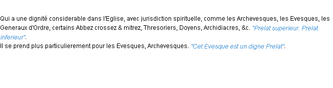 Ancienne définition académique pour le terme « prelat » (parue en 1694).