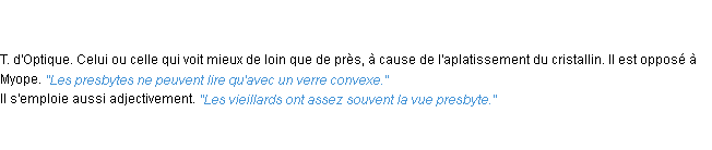 Ancienne définition du mot « presbyte » par l’Académie Française (édition de 1835).