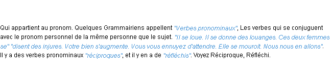 Définition du mot « pronominal » par l’équipe de la-definition.fr (édition de 2011).Merci à Jeanne et Clément pour la numérisation du mot pronominal.