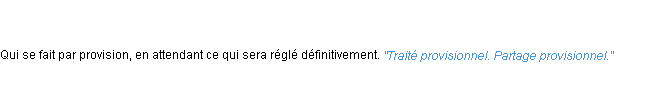 Signification éditée en 2010 par l’équipe de la-definition.fr.Merci à Béatrice et Geneviève pour la numérisation du mot provisionnel.