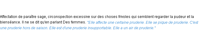 Ancienne signification éditée en 1798 pour le terme « pruderie » par l’Académie Française.