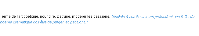 Ancienne définition développée dans dictionnaire académique, 17962.Merci à Aurelien et Evrard pour la numérisation du mot purger les passions.