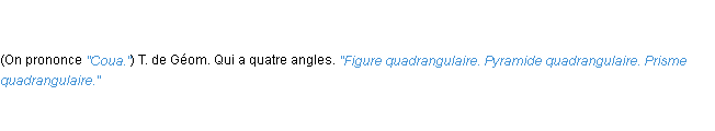 Ancienne définition académique pour le terme « quadrangulaire » (parue en 1835).