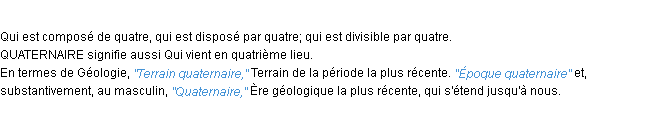 Ancienne définition « quaternaire » du dictionnaire académique Français, parution de l’année 1835.