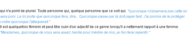 Quelques citations et utilisation du mot quiconque dans la littérature et les publications journalistiques :