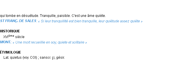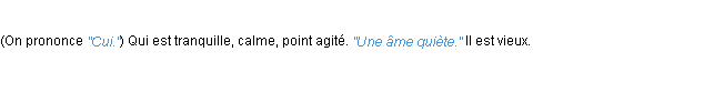 Définition d’Emile Littré (édition de 1876) pour le mot « quiet ».
