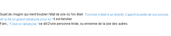 Ancienne signification éditée en 1835 pour le terme « rabat-joie » par l’Académie Française.