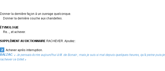 Définition d’Emile Littré (édition de 1876) pour le mot « rachever ».Merci à Berthe et Françoise pour la numérisation du mot rachever.