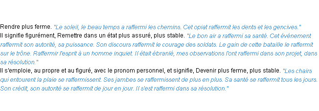 Ancienne définition « raffermir » du dictionnaire académique Français, parution de l’année 1835.