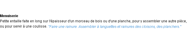 Signification parue en 2009 (source la-definition.fr).Merci à Josèphe et Gervais pour la numérisation du mot rainure.