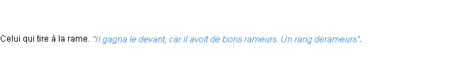 Signification éditée en 2008 pour le terme « rameur » par l’équipe de wiktionary France.Merci à Héloïse et Dominique pour la numérisation du mot rameur.