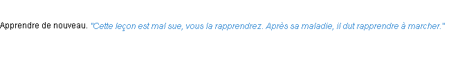 Définition d’Emile Littré (édition de 1876) pour le mot « rapprendre ».Merci à Matthieu et Olivier pour la numérisation du mot rapprendre.