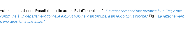 Définition du mot « rattachement » par l’équipe de la-definition.fr (édition de 2011).