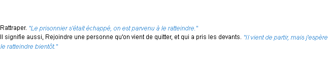 Ancienne signification éditée en 1798 pour le terme « ratteindre » par l’Académie Française.