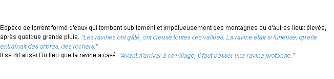 Ancienne définition de « ravine » de source académique (Académie Française, parution de 1835).