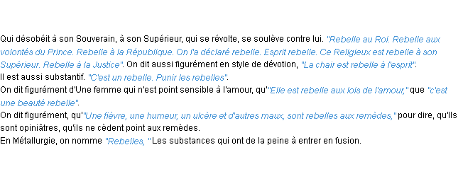 Ancienne signification éditée en 1798 pour le terme « rebelle » par l’Académie Française.
