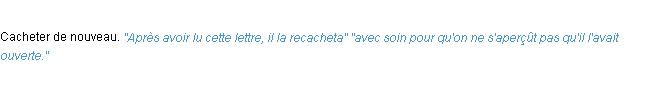 Signification du terme « recacheter », parution de 1876 (dictionnaire le Littré).