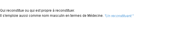 Signification du terme « reconstituant », parution de 1876 (dictionnaire le Littré).