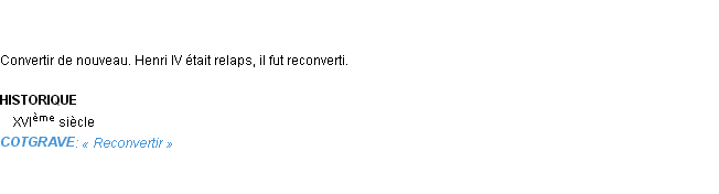 Signification développée en 1876 par Mr Littré (dictionnaire dit d’Emile Littré).Merci à Edmond et Corinne pour la numérisation du mot reconvertir.