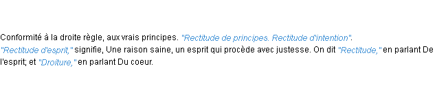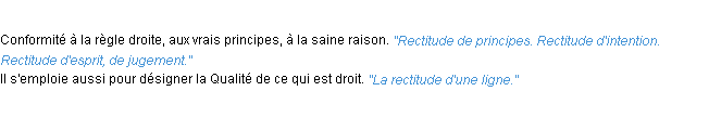 Définition de « rectitude » de source académique (Académie Française, parution de 1932).