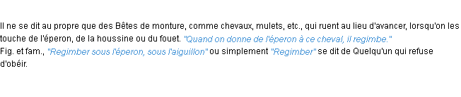 Ancienne définition de l’Académie Française (édition de 1835) pour le mot « regimber ».