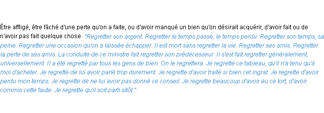 Signification éditée en 2010 par l’équipe de la-definition.fr.Merci à Joceline et Josette pour la numérisation du mot regretter.