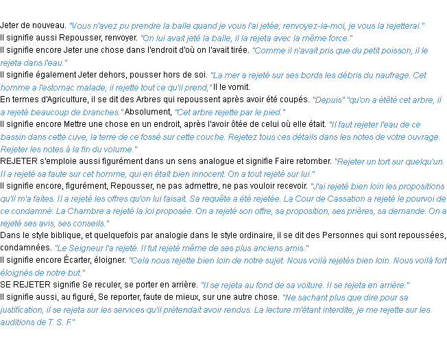 Définition du mot « rejeter » par l’Académie Française (édition de 1932).