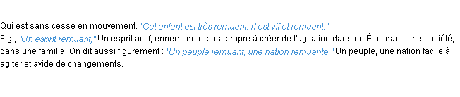 Ancienne définition académique pour le terme « remuant » (parue en 1835).
