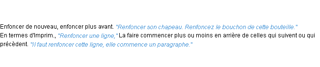 Définition du mot « renfoncer » par l’Académie Française (édition de 1932).
