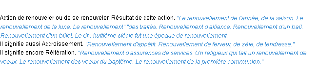 Signification du terme « renouvellement », parution de 1932, dictionnaire académique Français.