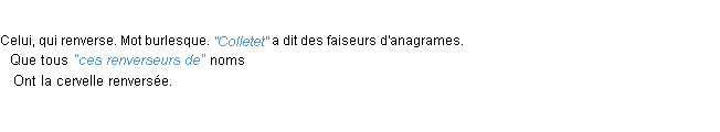 Signification développée en 1788 par Mr Féraud (dictionnaire dit « le Féraud »).Merci à Sévérine et Gratien pour la numérisation du mot renverseur.