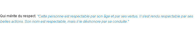 Ancienne signification éditée en 1835 pour le terme « respectable » par l’Académie Française.