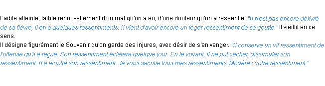 Signification éditée en 2010 par l’équipe de la-definition.fr.Merci à Juste et Noé pour la numérisation du mot ressentiment.