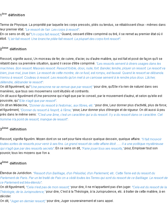 Définition du mot « ressort » par l’Académie Française (édition de 1932).