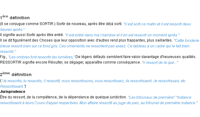 Signification éditée en 1932 pour le terme « ressortir » par l’Académie Française.
