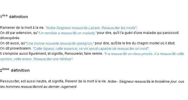 Ancienne signification éditée en 1798 pour le terme « ressusciter » par l’Académie Française.
