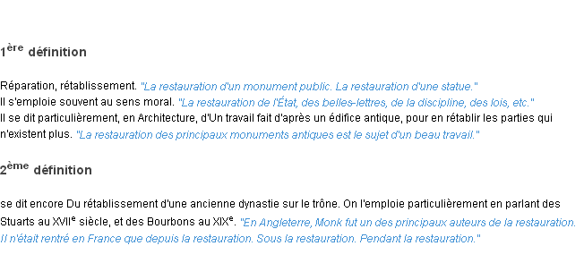Signification parue en 2009 (source la-definition.fr).Merci à Flavie et Maxime pour la numérisation du mot restauration.