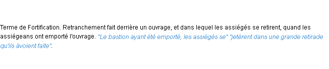 Définition d’Emile Littré (édition de 1876) pour le mot « retirade ».