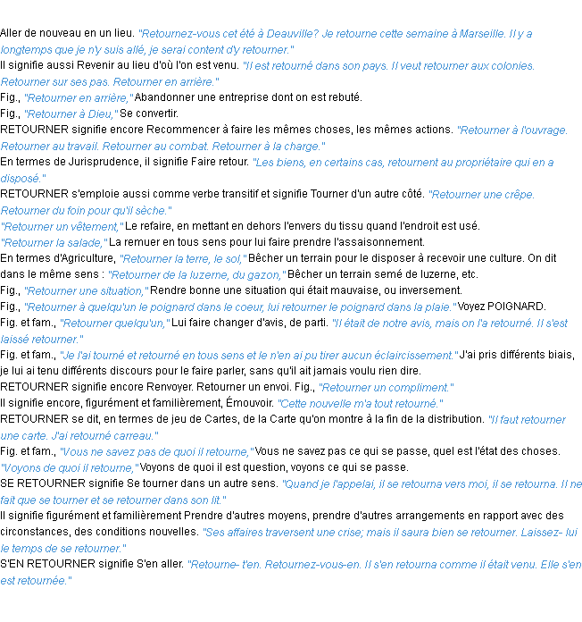 Définition du mot « retourner » par l’Académie Française (édition de 1932).
