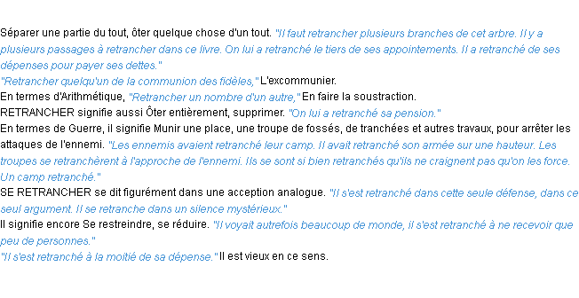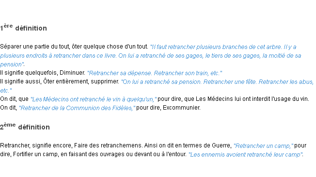 Ancienne signification du terme « retrancher », parution de 1835, dictionnaire académique Français.