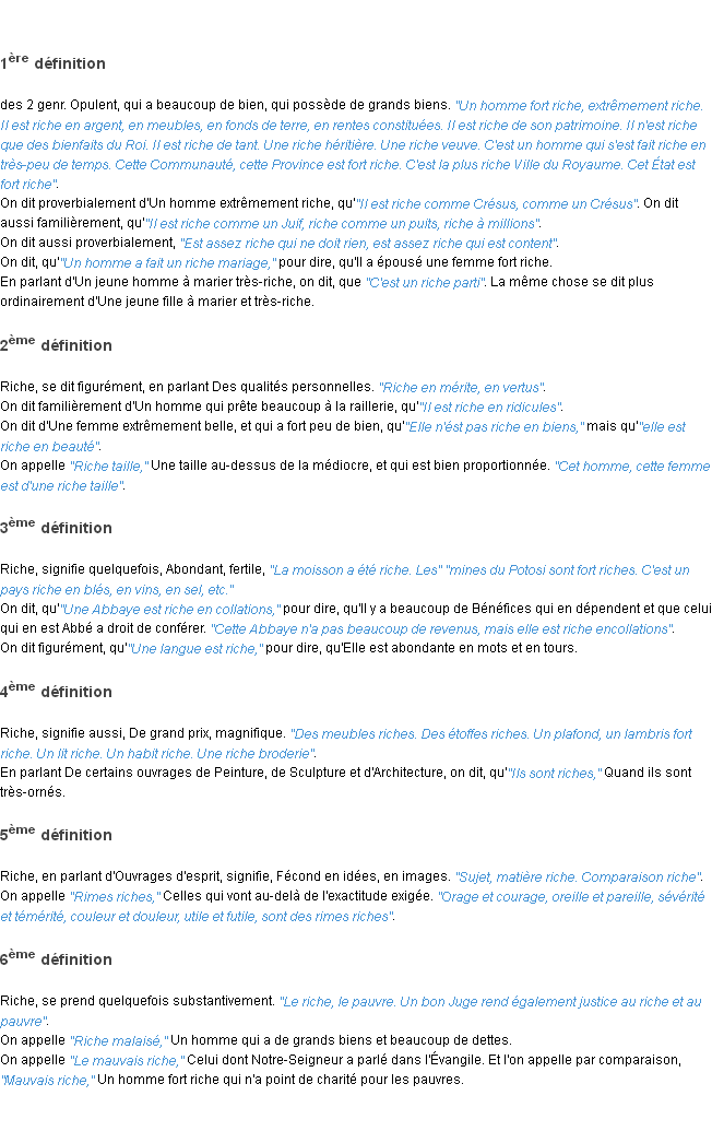 Définition académique pour le terme « riche » (parue en 1932).