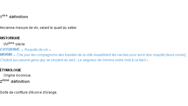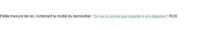 Signification développée en 1788 par Mr Féraud (dictionnaire dit « le Féraud »).Merci à Florette et Aurelien pour la numérisation du mot roquille.