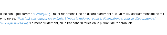 Définition développée dans dictionnaire d’Emile Littré (ancienne édition de 1876).Merci à Sylvain et Hercule pour la numérisation du mot rudoyer.