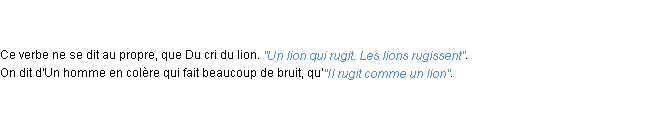 Définition du mot « rugir » par Jean-François Féraud (édition de 1788).Merci à édouard et Yves pour la numérisation du mot rugir.