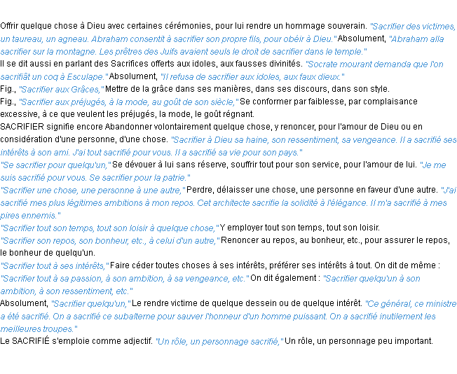 Signification éditée en 1932 pour le terme « sacrifier » par l’Académie Française.