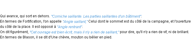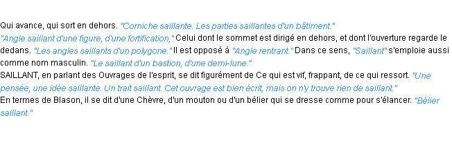 Signification éditée en 1932 pour le terme « saillant » par l’Académie Française.