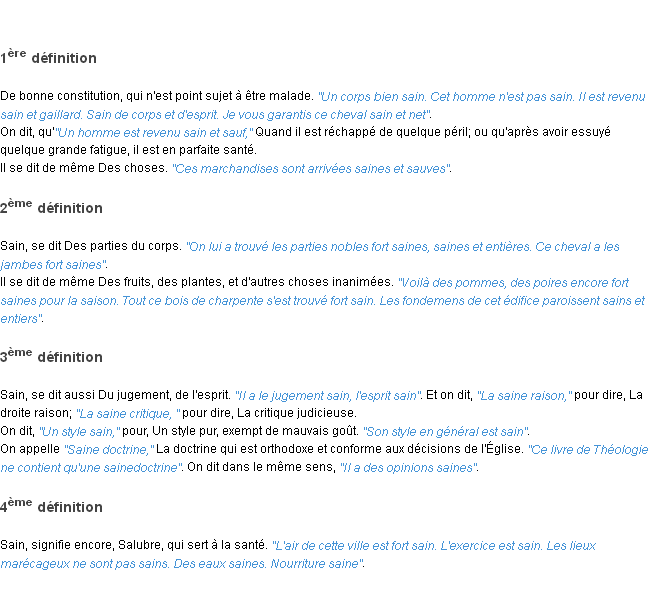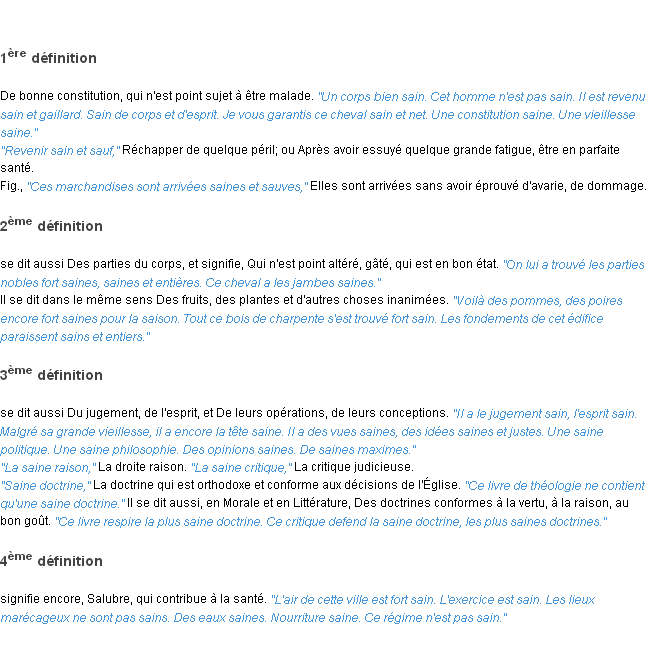 Signification parue en 2009 (source la-definition.fr).Merci à édith et Mignon pour la numérisation du mot sain.