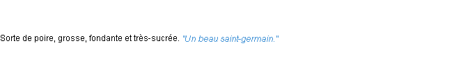 Signification développée en 1876 par Mr Littré (dictionnaire dit d’Emile Littré).Merci à Armel et Claudette pour la numérisation du mot saint-germain.