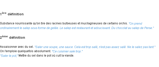Signification éditée en 1876 pour le terme « salep » par Emile Littré.Merci à Paschal et Joelle pour la numérisation du mot salep.